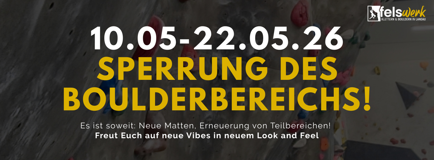 Vom 10. Mai bis einschließlich 22. Mai schließen wir den Boulderbereich für einen Umbau. In dieser Zeit passiert einiges hinter den Kulissen: