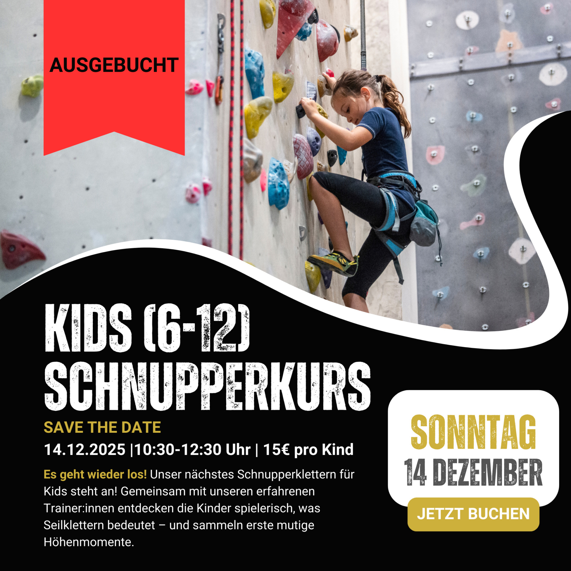 Für die Jüngsten gibt es einen Schnupperkurs für Kinder, bei dem spielerisch die Grundlagen des Kletterns vermittelt werden. Die Kids können sich ausprobieren, Vertrauen in ihre eigenen Fähigkeiten entwickeln und erleben, wie gut es tut, gemeinsam über sich hinauszuwachsen.